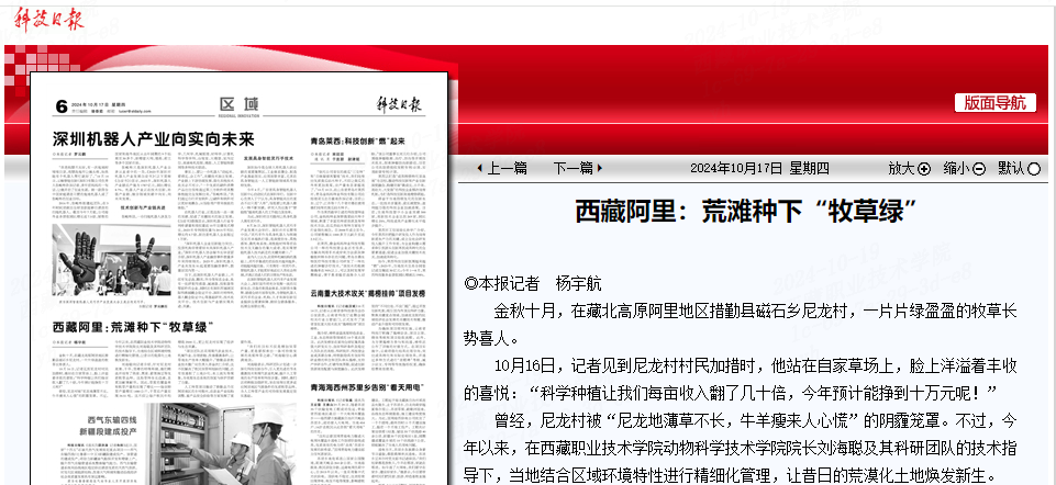 金秋十月,在藏北高(gāo)原阿裏(lǐ)地區措勤(qín)縣(xiàn)磁石鄉尼龍村,一片片綠盈盈的牧草長勢喜人。10月16日,記者見到尼龍村村民加措時,他站(zhàn)在自(zì)家草場上,臉上洋溢(yì)著豐收的喜(xǐ)悅(yuè):“科學種植讓(ràng)91官网每畝(mǔ)收入翻了幾十倍,今年預計...