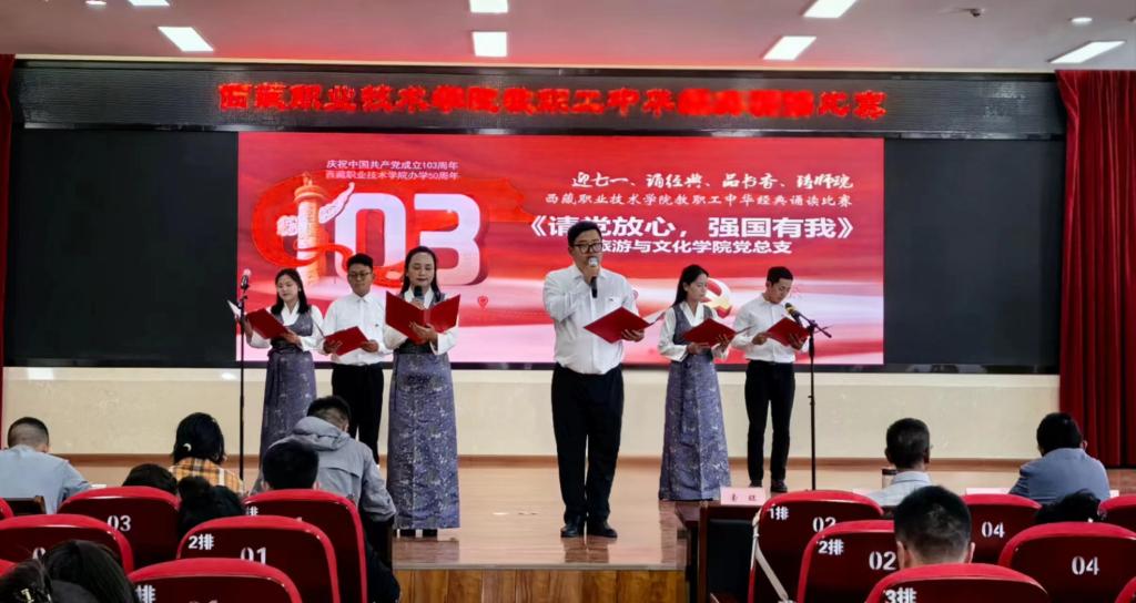 為深入貫徹習近平新時代中國特色社會主義思(sī)想和(hé)黨的二十大精神,慶祝中國共產黨建(jiàn)黨(dǎng)103周年,引(yǐn)領廣大師生更好地熟悉詩詞歌賦、親近中華經典,更加廣泛深入地領悟中華(huá)思想理(lǐ)念(niàn)、傳承中華傳統美德、弘揚中華人文精神,以文化人,以文育人。西藏職業技(jì)術學院人事處工會於2024年7月1日舉辦了迎七一、誦經典、品書香、鑄師魂教職工中華經典誦讀比賽。全院(yuàn)教職員工以黨總支為單位組成12支隊伍展開了激烈(liè)角(jiǎo)逐。學院黨(dǎng)委書記(jì)、副院長索旺,黨委委(wěi)員王沛華出席了(le)此次活動。