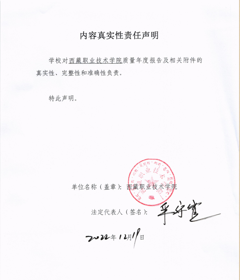西藏職(zhí)業技術學院2022年職(zhí)業教育質量(liàng)年(nián)度報告