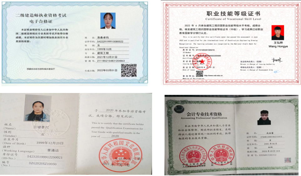 圖9:西藏職業技術學院學生考取的各類X證書