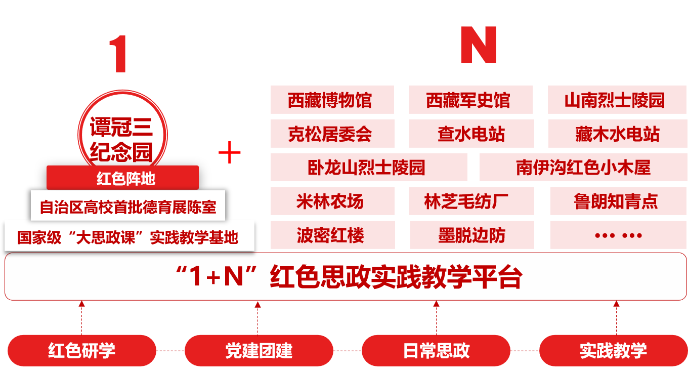 建好紅色陣地。將“老西藏精神(shén)”引入實踐教(jiāo)學體係,將譚冠三紀念園建設成(chéng)為首批(pī)國家級“大思政課”實踐教學基地,師生接待服務區內(nèi)外參觀學習2300多場、11餘萬人次;設立自治區高校首批德育展陳室,作為校(xiào)內(nèi)思政課實踐(jiàn)教學(xué)基地,每一處展板、每一個角落都充分(fèn)發揮育人作用,將學生日常(cháng)思政、黨建團建與區(qū)內各個紅色陣地有效結合(hé)。
