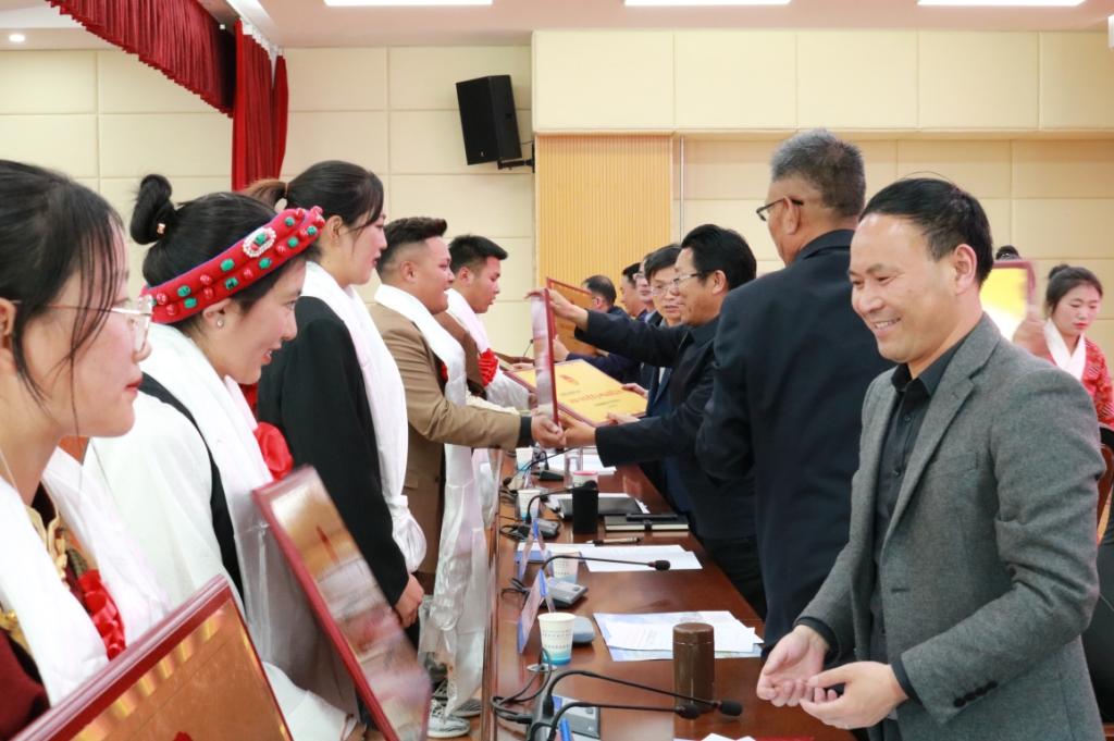 校黨委委員、副校長紮西巴珠宣讀《共(gòng)青團西藏職業技術學院委員會(huì)關於表(biǎo)彰2022-2023學年共青(qīng)團工作先進(jìn)集(jí)體和個人的決定》。優秀團務工作者代表範鑫(xīn)和優秀共青團員代表機電工程技術學院21級發電2班旦(dàn)增吉美同學上台發(fā)言。隨後,新發展團員代表在大會上進行入(rù)團宣誓,與會人員一同重溫入團誓詞。