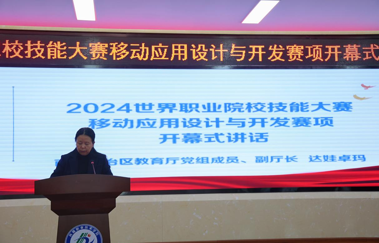 10月25日下午,2024年(nián)世界職業(yè)院校技(jì)能大賽總決賽(sài)爭奪賽“移動應用設計與開(kāi)發”賽項(高職組)在西藏(cáng)職業(yè)技術學院隆重開幕。西藏自治區人民(mín)政府副秘書長楊銳,西藏自治區教育(yù)廳黨組成(chéng)員、副廳長達娃卓瑪,西藏職(zhí)業技術學(xué)院黨委書記、副院長索旺,世賽執委會選派裁判巡視員劉俊,世(shì)賽(sài)執委會選派紀律監督員李江(jiāng)飛(fēi)等出席開幕式,西藏職業技術(shù)學院(yuàn)黨委副書記、院長陳飛主(zhǔ)持。