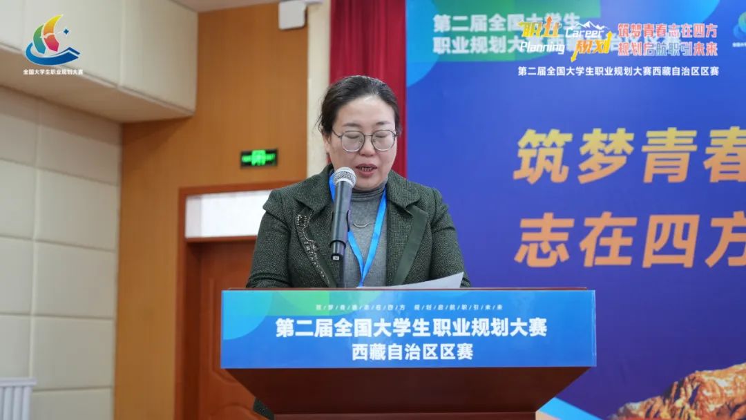 指導教師代表格桑拉姆在發言中表示(shì),職業規劃是人生的重(chóng)要課題,對於即將步入社會(huì)的大學生而言(yán),更是至關重要。本次大賽(sài)為大家提(tí)供了一個(gè)展(zhǎn)示自我、規劃未來(lái)的廣闊舞台。在(zài)這裏,你們可(kě)以盡情探索自己的職業興(xìng)趣,為未來的職業發展繪製清晰的(de)藍圖。這不僅是一場比賽,更是一次深度的自我認知與成長之旅。