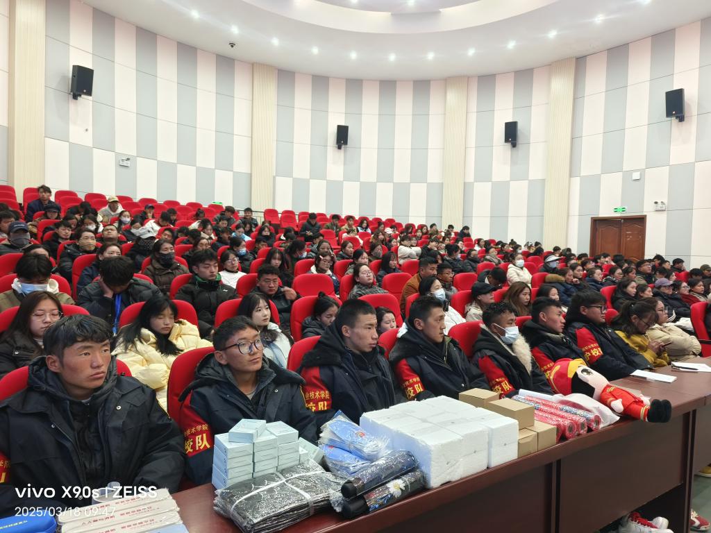 為落實學校(xiào)消防安全主體責任,進一步提高(gāo)廣大師(shī)生消防安全意識和自防自救(jiù)能力,堅決防範和遏(è)製火災事故發生。3月(yuè)18日,學生工作處聯(lián)合拉薩市雪域藍盾·消防宣傳教育講師團在西校區組織收看(kàn)2025年春季全國高校消防安全公開課(kè)並開展係列校園消(xiāo)防(fáng)疏(shū)散演練(liàn)和滅火器實操教(jiāo)學。學院黨委委員、副院長(zhǎng)程曉盈出席會議,共計200餘名師生參加會議。