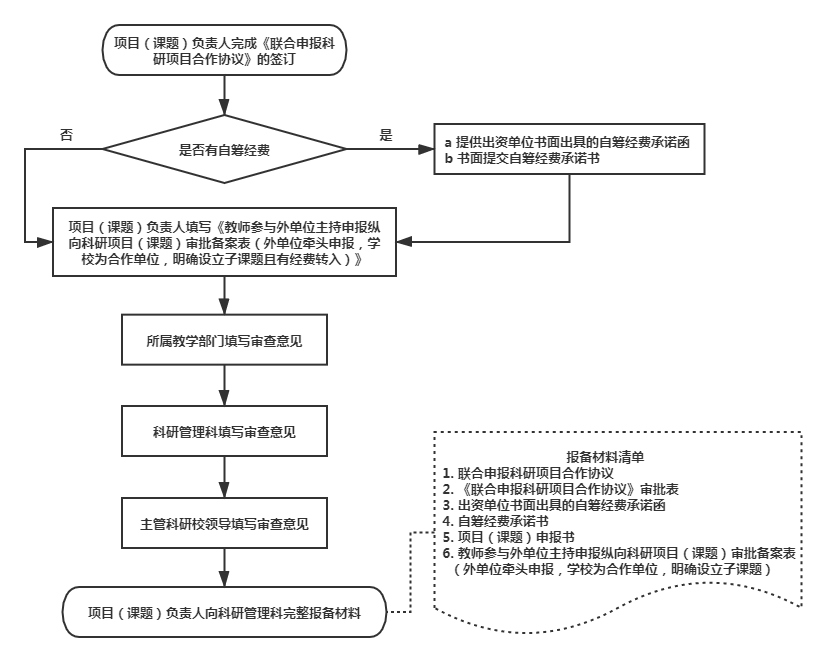 2.學校牽頭申報,學校為主持單位,有其他合作單位,我校教師為項目(課題)負責人的縱向科研項目(課題)審批備案流程
