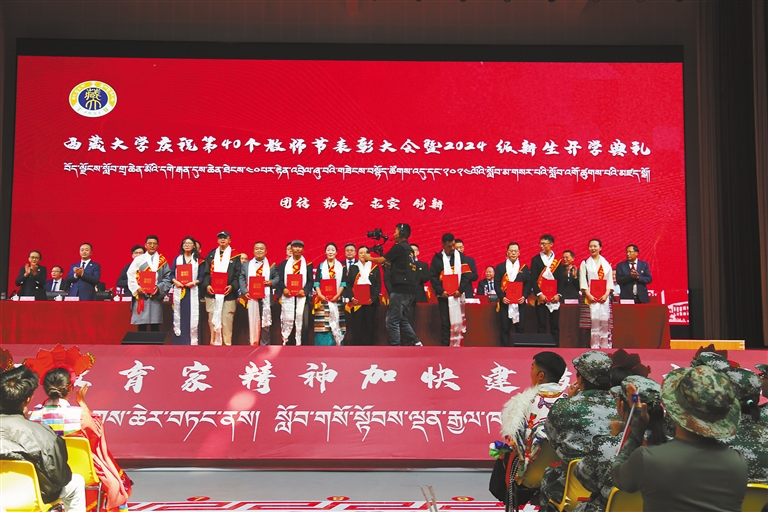 圖為9月10日下午,西藏大學在納金校區雙創活動(dòng)中心舉辦第40個教師節表彰大(dà)會暨2024級新(xīn)生開學典(diǎn)禮(lǐ)。圖為(wéi)優秀教師表彰現(xiàn)場。 本報(bào)記者 潘璐 攝