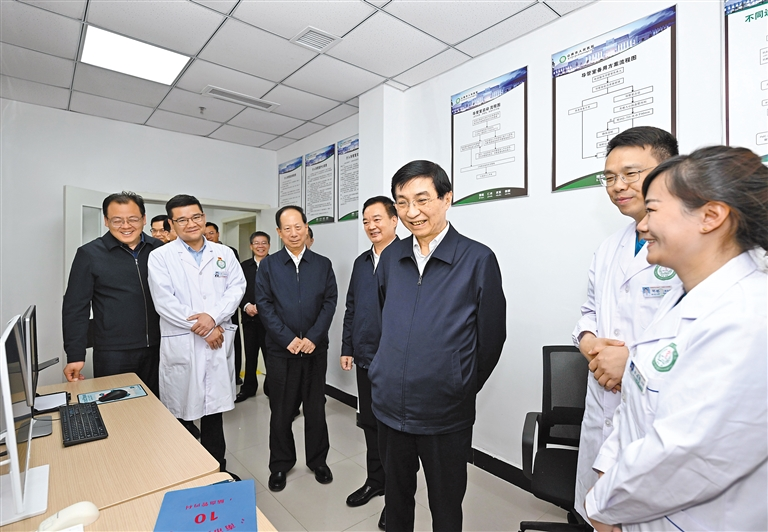 中(zhōng)共中(zhōng)央政治(zhì)局常委、全國政(zhèng)協主(zhǔ)席(xí)王滬寧到拉薩、山南就對口援藏(cáng)等工(gōng)作開展情況進行調研。這是八(bā)月二十七日,王滬寧在山南市人民醫院調研。新(xīn)華社記者申宏攝