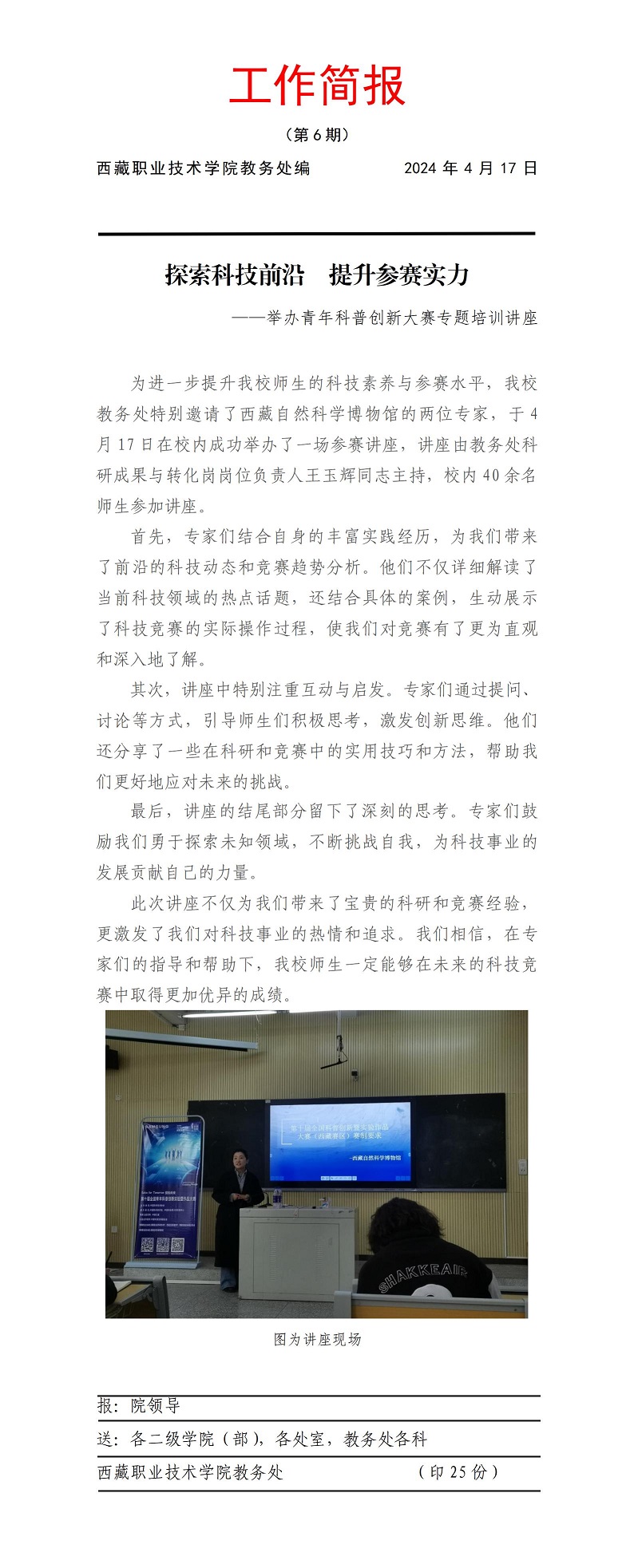 上一條:我校與拉薩市科技局舉行科研合作座談交流會 下一條:西藏職業技術學院召(zhào)開2024年學校專業建設大討論工作部署暨專業人才培(péi)養方案製(修)訂工作培(péi)訓(xùn)會
