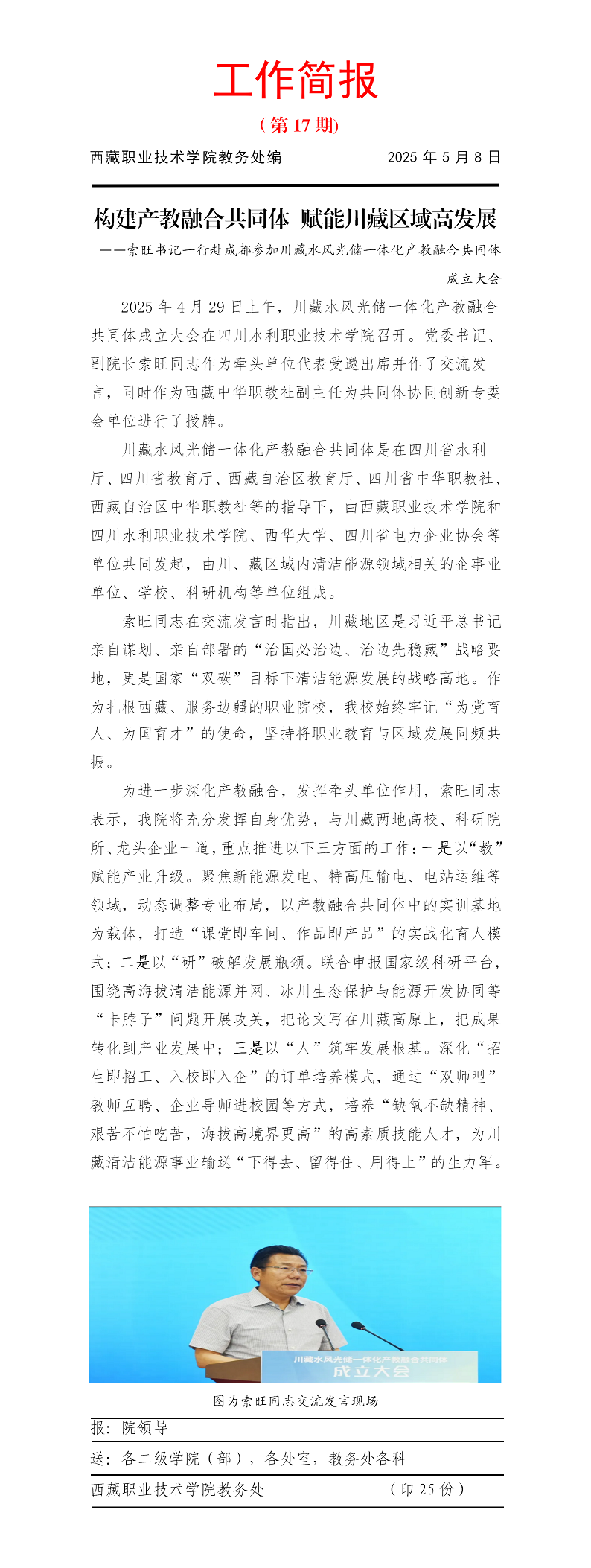 構建產(chǎn)教融合共同體 賦能川藏區域高發展 ——索旺書記一行赴成都參加川(chuān)藏水風(fēng)光儲一體化產教(jiāo)融合共同體成立大會