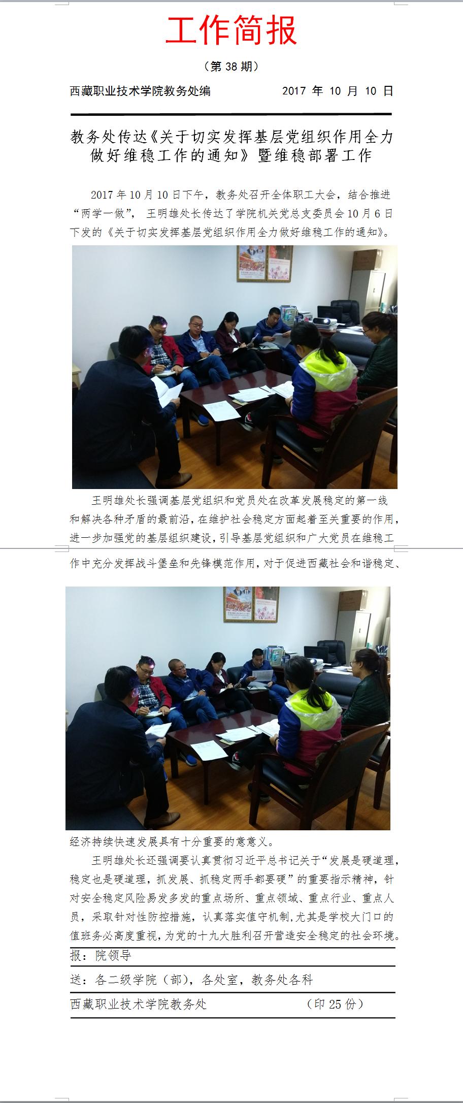 教務處傳達《關於切實發揮基層(céng)黨組織作用全力做好維(wéi)穩工作的通知》暨維穩部署工作