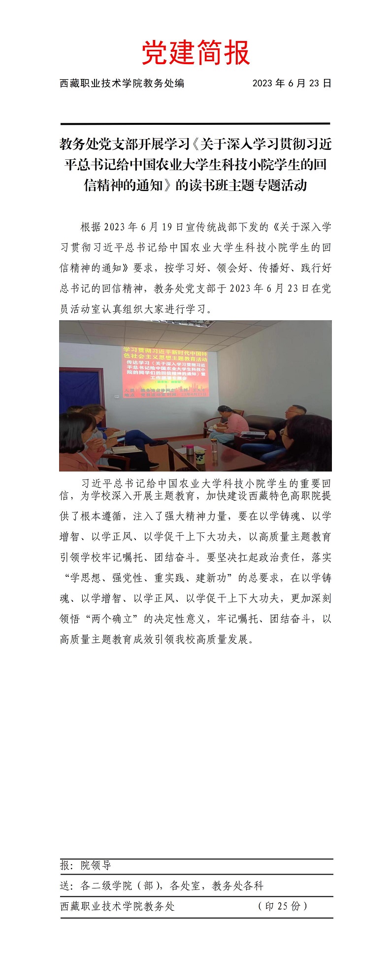 教務(wù)處黨支部開展學習《關於深(shēn)入學習貫徹習近平總(zǒng)書記給中國農業大學生(shēng)科技小院學生的(de)回信精神的通知》的讀書班主題(tí)專題(tí)活動