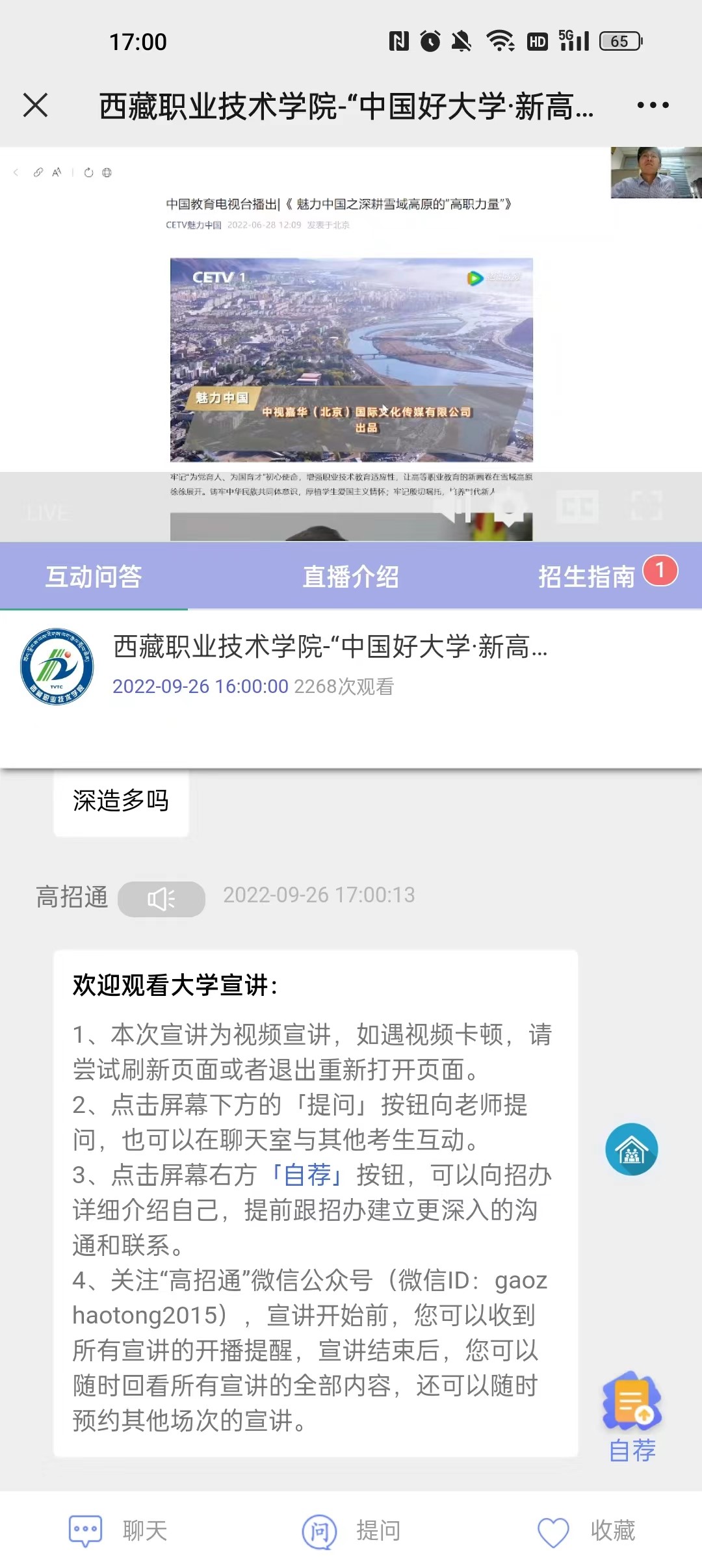 為避免疫情帶來的不利影響,我處今年及時調整招生宣傳方(fāng)案,加大線(xiàn)上宣傳(chuán)力度——與“高考寶”進行深度合作,通過“主題宣傳”、“定點推送”等渠道(dào)在區內(nèi)外進行宣傳推廣。據後台統計,此次招生宣講活動收看人次達到了2268人(rén)次,成效斐然(rán)。