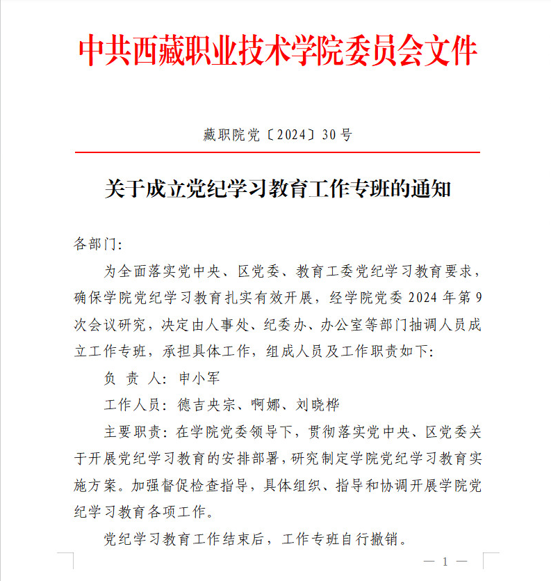 【學院行動】關於成(chéng)立黨紀學習教育工作(zuò)專班的通知
