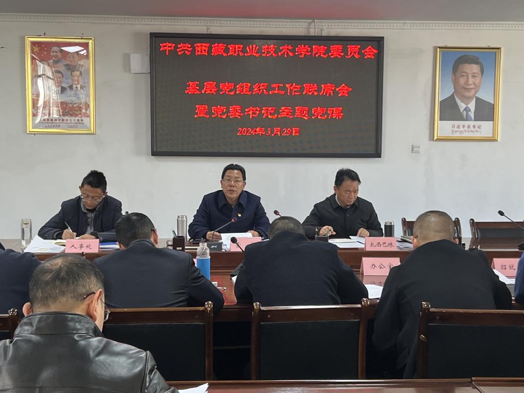 3月29日上午,學院黨委組(zǔ)織召開了基(jī)層黨組織工作聯席會暨黨委書記主題黨課。學院黨委書(shū)記(jì)、副院長索旺同誌出席了會議,各黨總支書記及組織委員,各黨支部書記參加了會議。會議由院黨委委員、副院長紮西巴珠同誌主持。